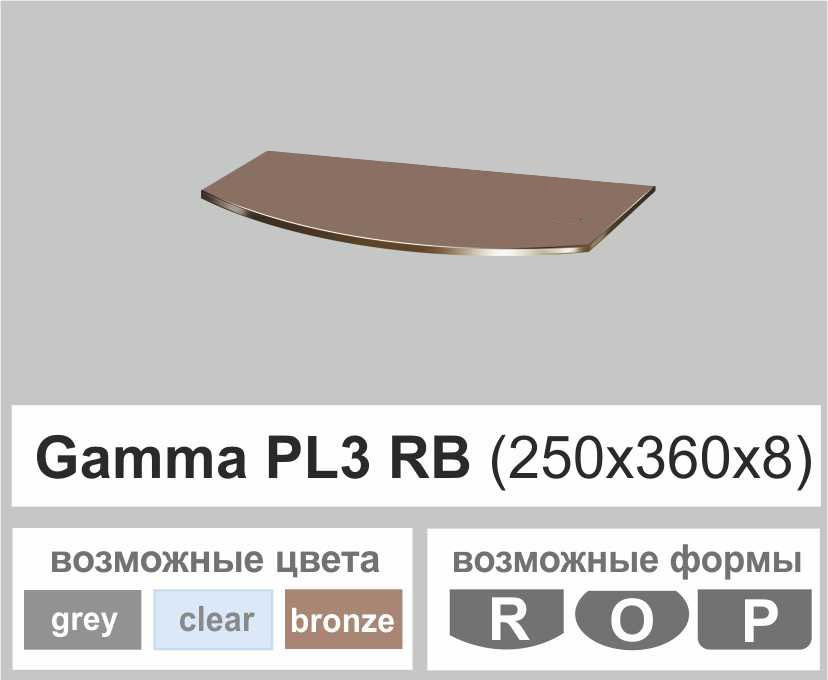 Полиці скло настінні навісні радіусні Commus PL3 RB (250х360х8мм)